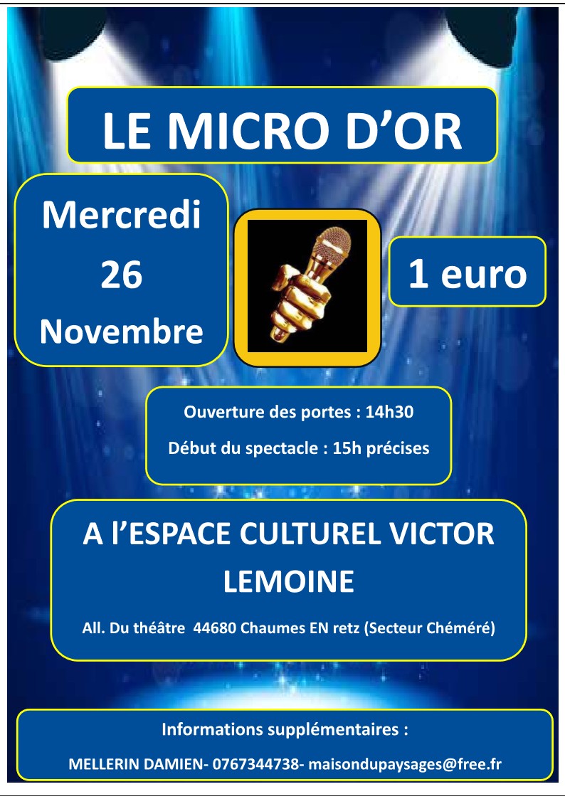 Vous êtes invités à participer à l'animation "LE MICRO D'OR", l'occasion de passer un moment agréable et convivial en interprétant vos chansons favorites.