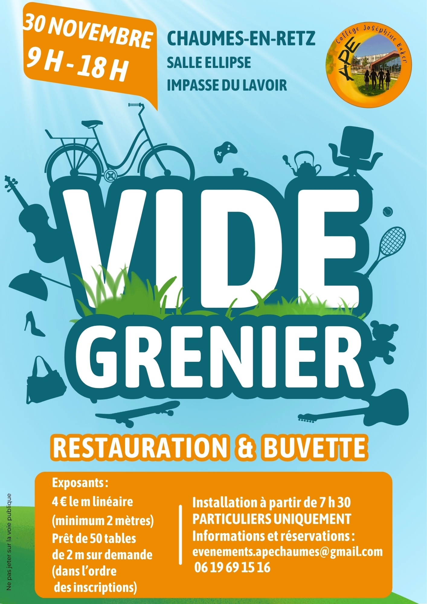 Le 3 novembre, l'APE du collège Joséphine Baker de Chaumes-en-Retz organise son premier vide-greniers à la salle Ellipse.